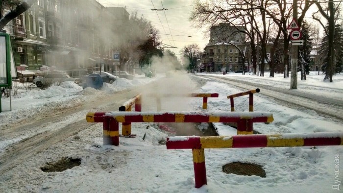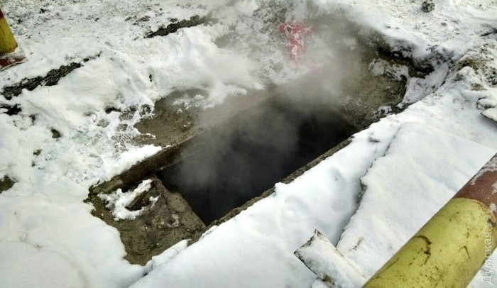 В глубине канала видны следы ремонтных работ. Над котлованами поднимается пар - это значит, что тепло по трассе уже подается. Остается надеяться, что до конца дня оно доберется до радиаторов в квартирах одесситов.
