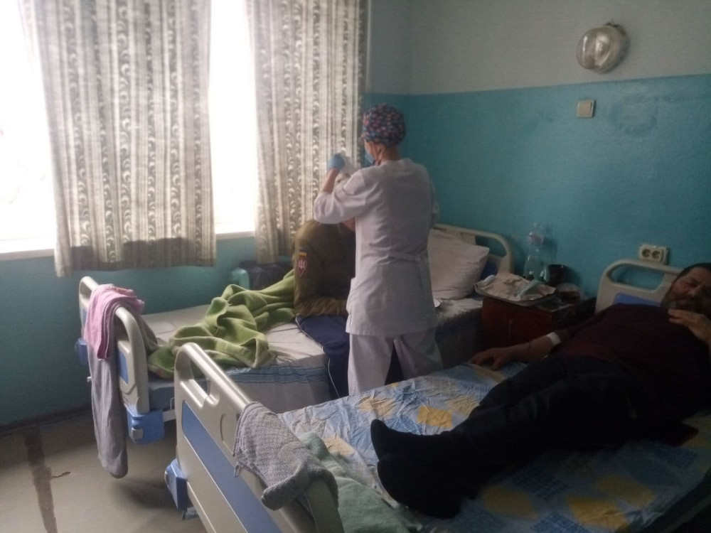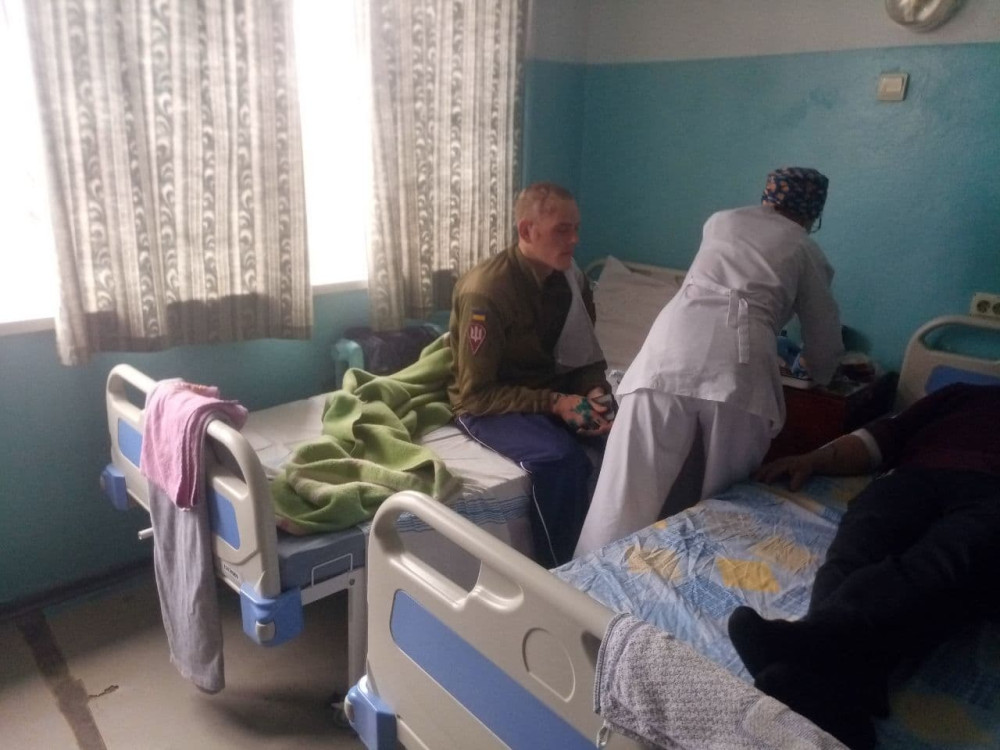 Раненые украинские солдаты стараются ободрять гражданских соседей. Сержант N-ской бригады ДШВ Николай, морщась от боли, улыбается и на чистейшем николаевском суржике (его ни с чем не спутаешь) рассказывает анекдот испуганным товарищам по несчастью. Те восхищенно смотрят на него, раскрыв рты.