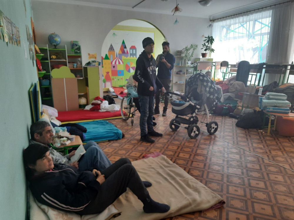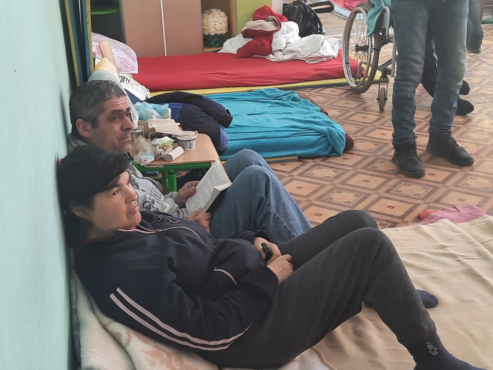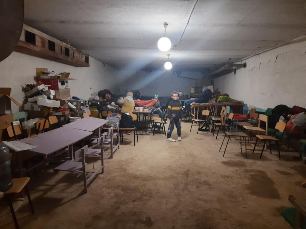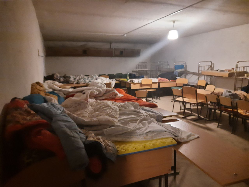 Беженцы спят в школе, в бомбоубежище. В качестве кроватей используют школьные парты. Столовая работает, кормит три раза в день.
