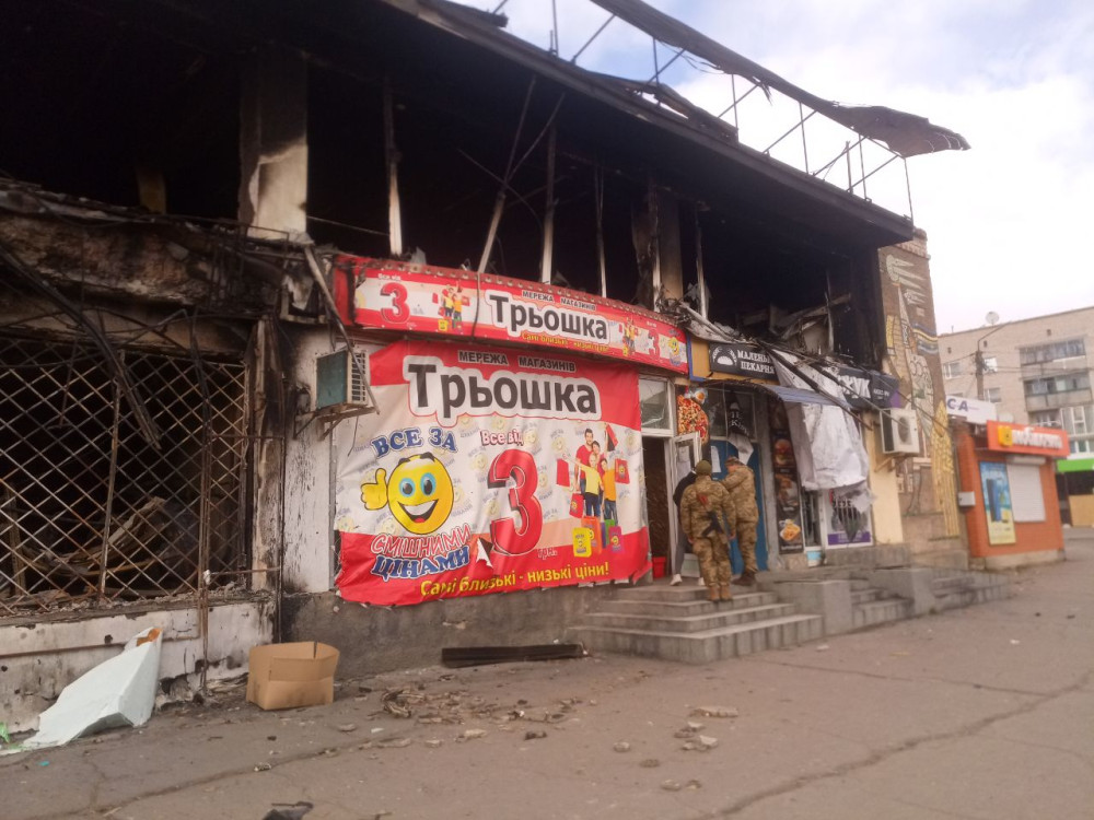 Люди в ужасе от того, что происходило и происходит в этих селах. Они просто плачут. Эти строки я пишу на улице почти стертой с лица земли Баштанки. Мне сложно собраться и включить профессионализм. Вместо домов — огромные воронки от снарядов, от человеческих жилищ просто ничего не осталось. Люди пытаются разгребать завалы, ищут свои вещи. Многие остались без крова. Им помогают наши военные, которые вошли сюда недавно. Впрочем, открылся один магазинчик в полностью разбомбленном торговом центре.