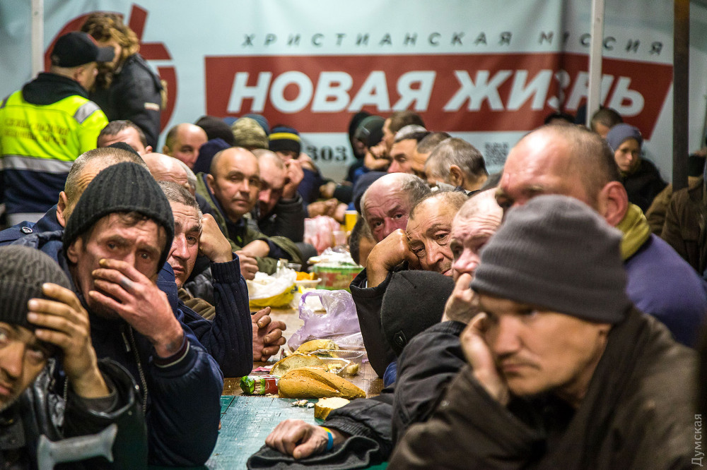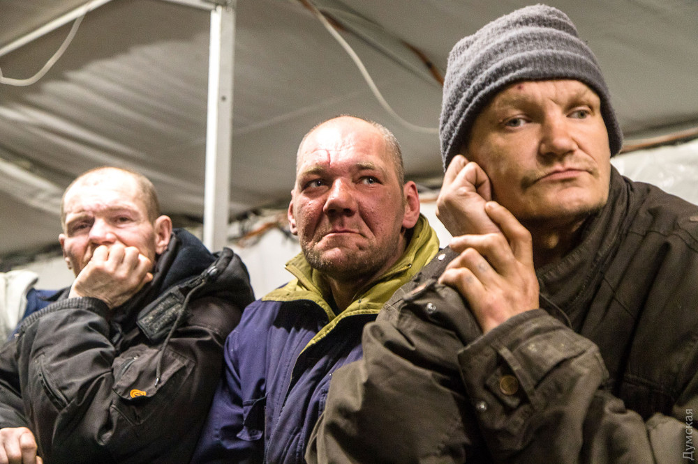 Некоторые выходят в теплый одесский январь. Большая часть вернется завтра вечером. Причуды погоды на руку бездомным. По словам Федора, в прошлые зимы половина бы до весны не дожила: таких людей мороз убивает быстрее, чем алкоголь.