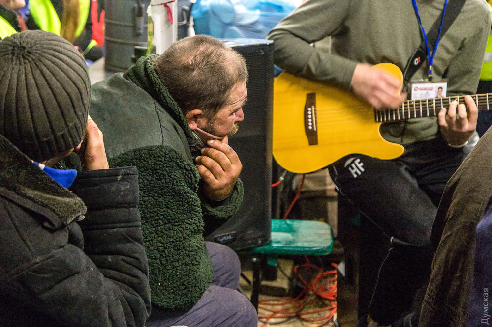 Сегодня вдвойне необычный день. По выходным, кроме хлеба, бездомные получают еще и порцию зрелищ. Нонче с музыкальной проповедью пред заблудшими выступят те, кто сумел обмануть судьбу и вырваться из ада – одесские музыканты, звезды андерграунда Стас Подлипский и Роман Иванько