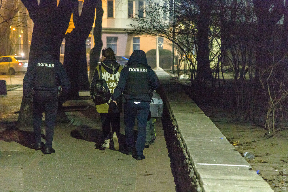 Рассказываем полицейским об Ольге и белокуром малыше. Советуют звонить ювеналам и растворяются в темноте Итальянского бульвара. Звоним. Спустя десять минут к палатке подъезжает еще один наряд. Ольга в панике. Просит отвезти ее в Киевский райотдел, где якобы работает уборщицей. Потом рассказывает, что хозяин квартиры выгнал их, но тут же, сообразив, чем это чревато, поправляется и просит набрать «куму с Радостной», где они как раз живут. В итоге патрульные забирают Ольгу и мальчугана в райотдел.