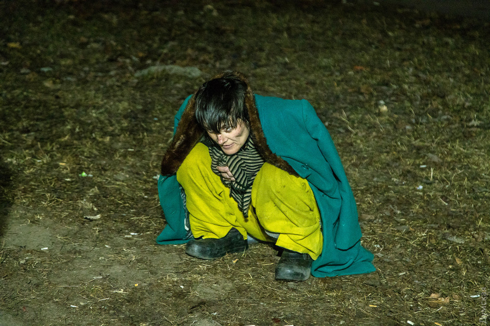 Внезапно появляются копы. Сотрудники спецподразделения патрульной полиции «ТОР» зачем-то привезли в палатку умирающую женщину. От человека там осталось немного — истощенное туберкулезом тело и безумные глаза. Женщина спала на конечной остановке троллейбуса №3, на Успенской. Сердобольные прохожие вызвали правоохранителей, но те вместо того, чтобы доставить несчастную в больницу или городской центр реинтеграции для лиц без определенного места жительства, зачем-то привезли ее на Куликово поле. Я расспросил полицейских и выяснил, что они даже не подозревают о существовании перечисленных учреждений.