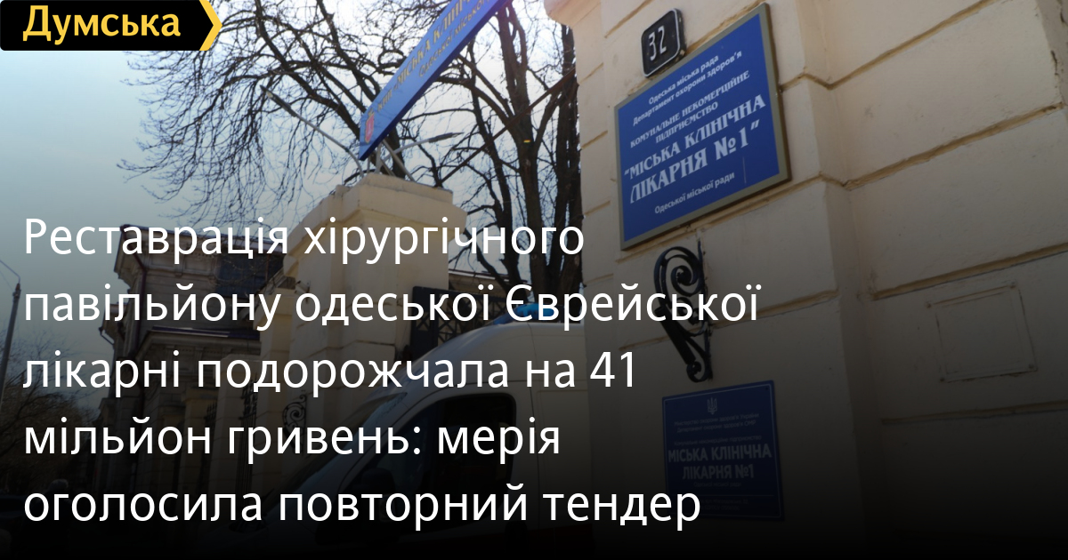 Реставрація хірургічного павільйону одеської Єврейської лікарні подорожчала на 41 мільйон гривень: мерія оголосила повторний тендерНа 41,5 млн грн подорожчала реставрація хірургічного павільйону міської клінічної лікарні №1 в Одесі, більше відомої як Єврейська. Як повідомляє кореспондент «Думської», зараз муніципальне управління капбудівництва, яке виступає в ролі замовника робіт, готове заплатити за них 168,2 млн грн, хоча до великої війни на реставрацію планували витратити 126,7 млн грн. Тендер із вибору підрядника відомство оголосило вчора, 17 червня. Пропозиції приймаються до 3 липня, тоді ж відбудеться й аукціон. Це вже друга за два місяці спроба визначити виконавця робіт. Перший раз тендер оголосили 6 травня, а аукціон провели 6 червня. У ньому брала участь лише одна компанія — ТОВ «АБЗ Промбуд», яка запропонувала відреставрувати павільйон за майже 170 млн грн. Згодом, однак, тендер скасували — нібито через неможливість усунення виявлених порушень законодавства у сфері публічних закупівель, а саме розбіжності сум податку на додану вартість у договірній ціні та формі тендерної пропозиції. У 2021 році теж проводився тендер, на якому перемогла компанія «Одесголовпостач». Її пропозиція склала 126,7 млн грн. У січні 2022 року результати аукціону скасували через «відсутність подальшої потреби» в закупівлі. Про зловживання і сумнівні тендери в Єврейській лікарні ми докладно писали тут. Помітили помилку? Виділяйте слова з помилкою та натискайте control-enter Новини по цій темі: 13 листопада 2025: Буде рекорд: одеський суд збирається витратити понад 5 млн грн на найпотужніший промисловий охолоджувач 8 жовтня 2025: Майже 40 млн постраждалим від повені, але хто винен, так і не ясно: в Одесі відбулася позачергова сесія міськради 30 серпня 2025: Двісті відсотків прибутку на онкохворих: як лікарні Одеської області переплачують десятки тисяч за медичне обладнання |