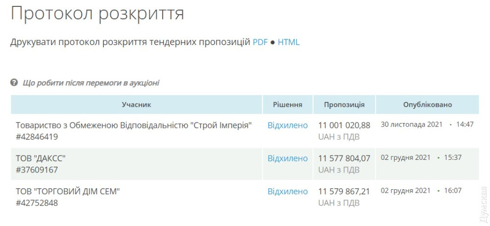 Аукцион состоялся еще 5 января, а вот результаты стали известны лишь вечером 11 января. Самую низкую цену (10,19 миллиона гривен) предложило ООО «Укрспецпроект», но компанию в итоге дисквалифицировали. Причин организаторы торгов указали несколько. Первая – завышение стоимости работ (в фирме посчитали, что не ремонтируют ТЮЗ, а строят заново).
