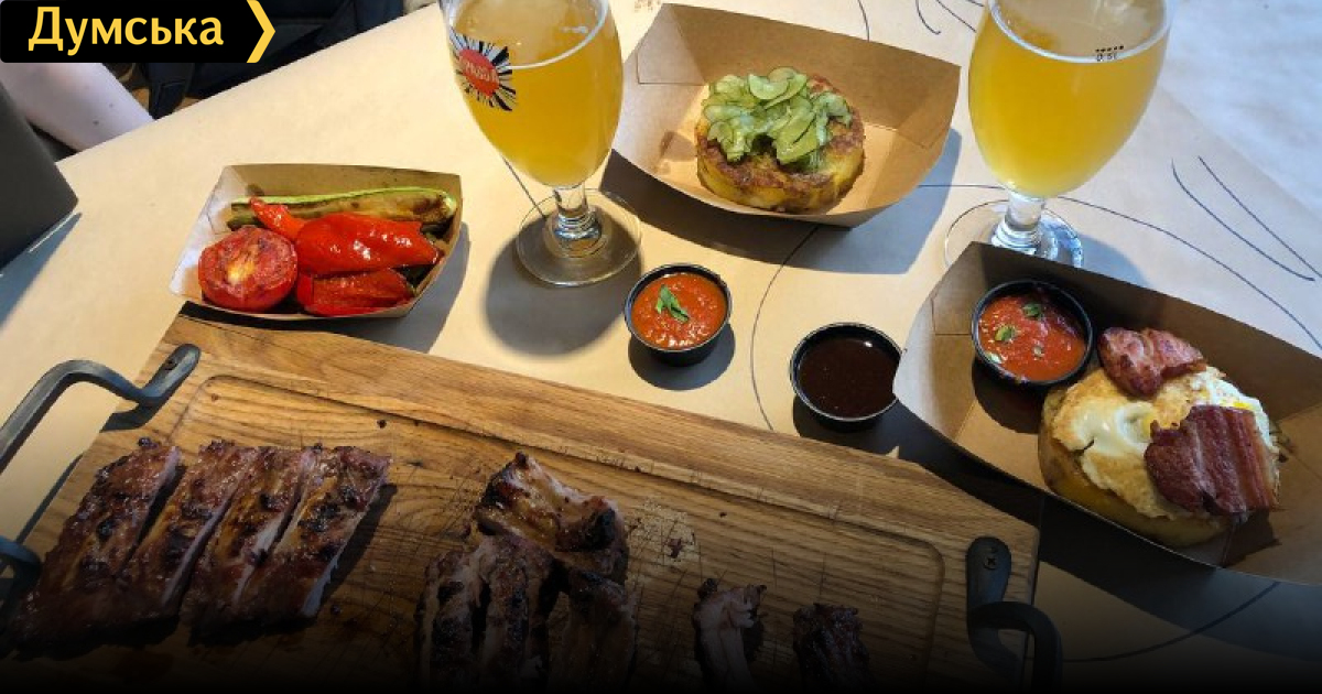 К слову, о ней, родимой – бумажных меню здесь нет, только QR-коды на столах. Приборы тоже не подают, хотя в меню присутствуют и супы. Как их есть руками, непонятно. Мы не стали с подругой пускаться во все тяжкие и заказали, конечно же, ребра, овощи-гриль, картофель на гриле и львовского пива. Заказ принесли быстро, но на этом, пожалуй, все хорошее и закончилось.