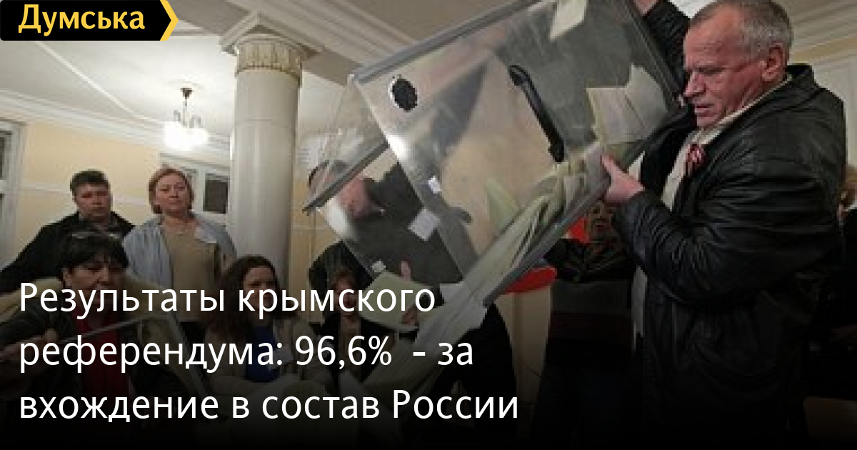 96,6% избирателей, принявших участие в референдуме о статусе Крыма, проголосовали за вхождение автономии в состав России, заявил глава комиссии по проведению референдума Михаил Малышев.