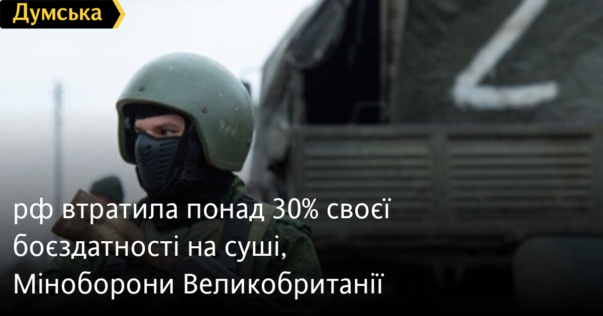 россия потеряла более 30% своей боеспособности на суше, заявил начальник штаба обороны Великобритании адмирал Энтони Дэвид Радакин, сообщает The Guardian.