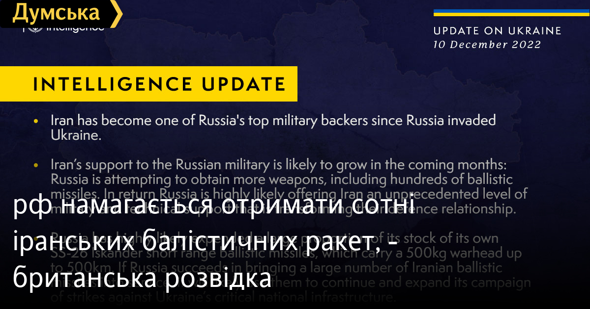 рф намагається отримати сотні іранських балістичних ракет, — британська розвідкаПро зростання військової підтримки окупаційних військ РФ з боку Ірану в найближчі місяці попереджає британська розвідка. росія намагається отримати більше зброї, включно із сотнями балістичних ракет, ідеться в щоденному розвідувальному огляді оборонного відомства. «Іран став одним із головних військових союзників рф після її вторгнення в Україну. Найближчими місяцями підтримка Іраном російських збройних сил, ймовірно, зросте», — повідомляють британці. У відповідь рф, найімовірніше, запропонує Ірану безпрецедентний рівень військової та технічної підтримки, що трансформує їхні стосунки в галузі оборони, йдеться у зведенні. Кремль, найімовірніше, витратив значну частину своїх запасів балістичних ракет малої дальності «Іскандер», які несуть 500-кілограмову боєголовку на відстань до 500 км, додають у британській розвідці. «Якщо Росії вдасться залучити велику кількість іранських балістичних ракет, вона, імовірно, буде використовувати їх для продовження і розширення своєї кампанії ударів по критично важливій національній інфраструктурі України», — йдеться у звіті. СМЕРТЬ РОСІЙСЬКИМ ОКУПАНТАМ! Помітили помилку? Виділяйте слова з помилкою та натискайте control-enter |