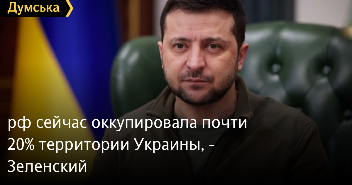Президент Украины Владимир Зеленский заявил, что на сегодняшний день россия оккупировала около 20% территории Украины и нашей армии нужно освободить 2 тыс. 603 населенных пункта.
