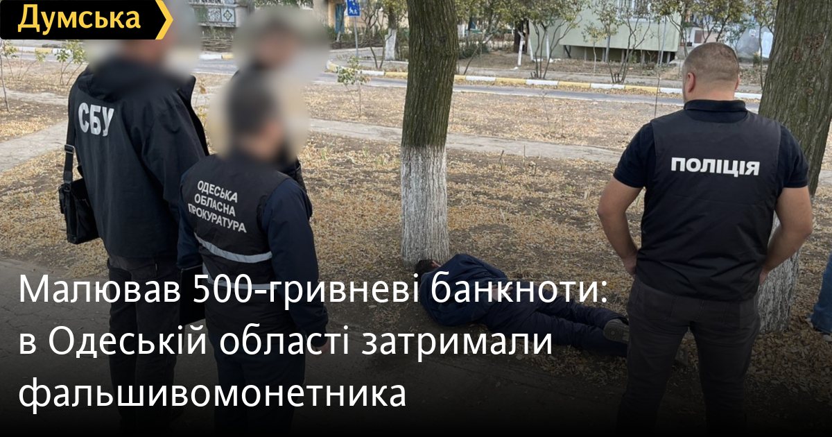 Фальшивомонетника, який підробляв купюри в 500 грн, затримали в Одеській області.