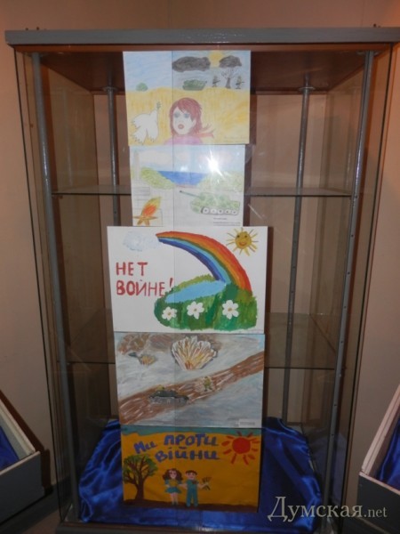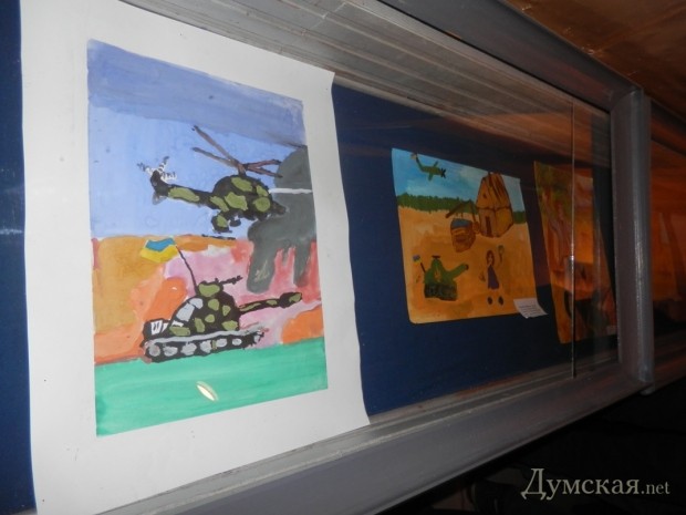 Символичным стало участие в выставке рисунков о войне, созданных одесскими школьниками. Детское творчество внесло мирные нотки в общую атмосферу выставки. «Наша цель — подчеркнуть поддержку общественности действий военных и добровольцев. За каждым ребенком стоит его семья, его учителя, его учебное заведение. То есть это видение не только его, но и его окружения», — продолжает Юрий Слюсарь.