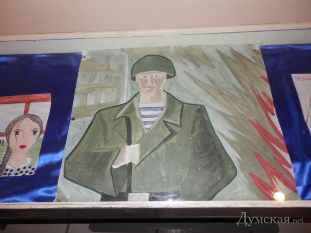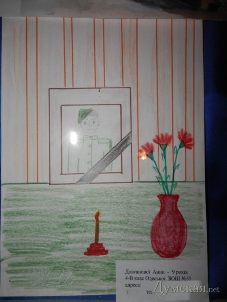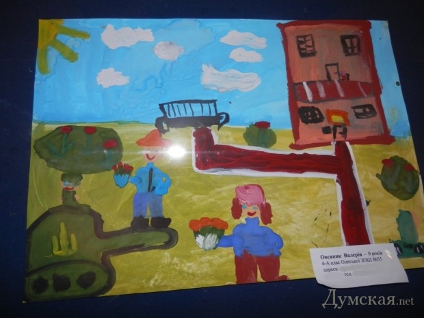 К слову, уже через неделю детские рисунки уедут прямиком в зону АТО. Их доставит гость выставки, солдат добровольческого батальона «Донбасс» Даниил Млавец. Он сейчас в отпуске, но уже через неделю снова вернется на линию фронта. Чтобы хоть чем-то скрасить военные будни братьев по оружию, одессит привезет им детские рисунки. «Это какая-то частичка тепла и поддержки, напоминание о доме. А со службы, пусть мой батальон и добровольческий, я уеду либо в гробу, либо после окончания войны. Когда она закончится, я обязательно найду одну женщину. Во время одного из обстрелов на блокпосту в Карловке она выбежала к нам и сказала, что террористы заходят с ее огорода и таким образом спасла нам жизни», — рассказал Даниил.