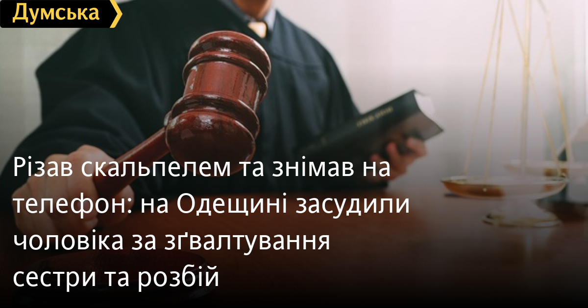 Різав скальпелем та знімав на телефон: на Одещині засудили чоловіка за зґвалтування сестри та розбійПонад 9 років проведе за ґратами мешканець Одещини за пограбування та зґвалтування двоюрідної сестри під погрозою скальпеля. Такий вирок виніс Доброславський районний суд. Як встановило слідство, у червні 2020 року чоловік зайшов до кімнати своєї двоюрідної сестри у будинку, не вони разом мешкали. Він порізав їй обличчя та руку скальпелем, а також залишив численні садна на її шиї. Залякавши жінку погрозами вбивства, він неодноразово зґвалтував її. Під час знущань обвинувачений змушував сестру називати його іншим ім’ям, гладити по голові та знімав усе, що відбувалося, на відео. Судово-медична експертиза підтвердила наявність у потерпілої травм статевих органів, рота а також ушкоджень, характерних для придушення. Усі ці травми було класифіковано як легкі тілесні ушкодження. Окрім цього, чоловік відібрав у жінки мобільний телефон вартістю 4000 гривень. Також встановлено, що вночі обвинувачений змусив сестру поїхати з ним на таксі до Одеси, щоб придбати «закладку» (психоактивні речовини). Він постійно контролював дівчину та не залишав її саму в машині. Насильство припинилося лише вранці, коли додому повернулася подруга потерпілої. Дівчата змогли втекти з будинку через вікно та одразу звернулися до поліції та лікарні. Під час обшуку в кімнаті обвинуваченого під килимом знайшли скальпель та телефон потерпілої. Обвинувачений у суді свою вину не визнав та просив його виправдати. Він стверджував, що статевий зв’язок відбувся за взаємною згодою, а потерпіла нібито його обмовила, бо боялася розголосу через відеозйомку. Він запевняв, що сестра поранилася під час пошуків «закладки». Щодо телефону, то сестра нібито дозволяла йому користуватися своїми речами, і ніякого пограбування не було. Та й в цілому, заперечував родинні зв’язки з потерпілою. Суд визнав підсудного винним у зґвалтуванні (ч. 2 ст. 152 КК України) та розбої (ч. 1 ст. 187 КК України). Він проведе за ґратами 9 років та 4 місяці. СМЕРТЬ РОСІЙСЬКИМ ОКУПАНТАМ! Помітили помилку? Виділяйте слова з помилкою та натискайте control-enter |