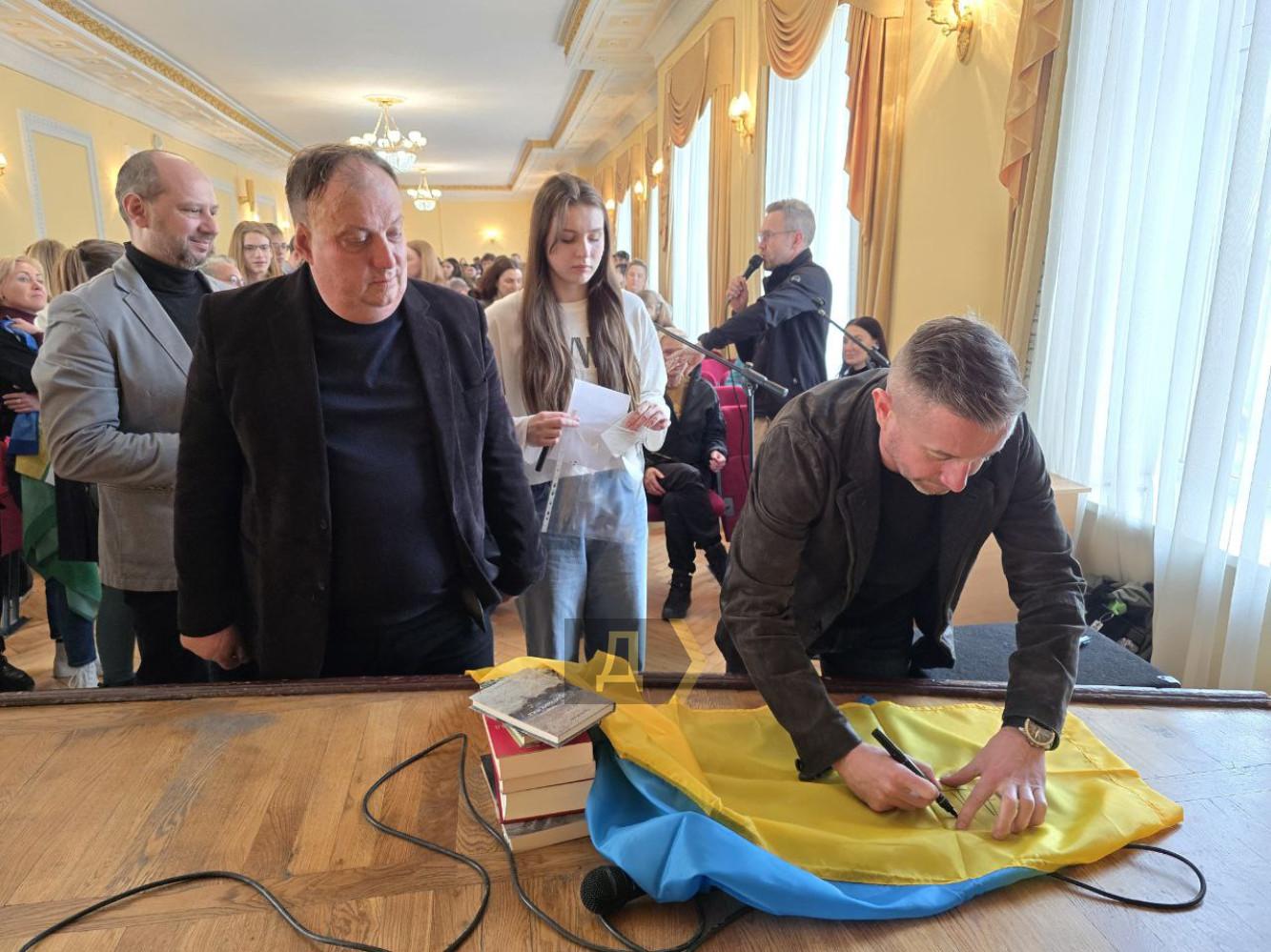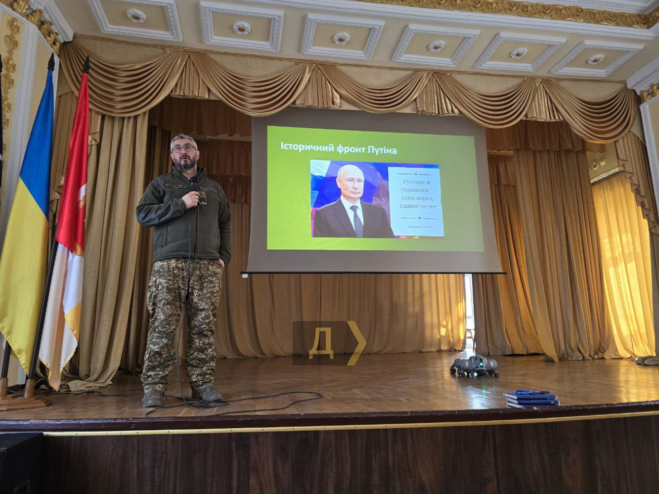 Жадан, Кіпіані та «Тайра» в Одесі розповіли про службу і показали робопса Елвіса (фото, відео)Зустріч студентів із представниками бригади «Хартія» Нацгвардії України: Сергієм Жаданом, Вахтангом Кіпіані та Юлією Паєвською «Тайра» відбулася в Одеському національному економічному університеті. Захід відбувся в рамках волонтерської програми «Хартія. Тур», передає наш кореспондент. Спікери поділилися історіями, як потрапили до бригади. Письменник і музикант Сергій Жадан розповів, що він приєднався до неї після оголошення загальної мобілізації. «Ми не збирались ховатися, зрозуміли, що служити доведеться, і зайнялися підбором відповідного місця, на якому були б максимально корисними й ефективними. «Хартія» починалася як невелика група добровольців-харків'ян, які стали на захист рідного міста. Ми контактували з перших днів війни, добре один одного знали, тому вибір був зроблений саме такий. Сьогодні перед бригадою стоять непрості виклики, і це не тільки бойові дії, а й укрупнення, бо саме на базі «Хартії» буде розгорнуто армійський корпус. Це десятки тисяч людей, зовсім інша логістика», — зазначив Сергій Жадан. Вахтанг Кіпіані перевівся в «Хартію» з іншого підрозділу територіальної оборони для посилення медійної складової та ідеологічної підготовки особового складу. «Свідомість — це проблема не тільки особового складу, а й нашого суспільства загалом. У липні 2022 року путін написав статтю, в якій докорінно змінив ідеологічні наративи. Якщо нам раніше транслювали думку, що українці та росіяни братні народи, то тепер — один народ. А це означає, що жити ми будемо не в різних державах, а в одній, з єдиною церквою, урядом тощо. Уже тоді стало зрозуміло, що війна неминуча, проте Україна не зуміла відмобілізуватися ні в армійському плані, ні ментально», — зазначив журналіст. Юлія Паєвська з позивним «Тайра» поділилася зі студентами економічного університету мрією про те, щоб воїнів на передовій замінили роботи, а бойових медиків — інженери, які б їх лагодили. «За роки, проведені у війську, я навчилася дуже багато чому — я можу добре навалювати з усіх видів озброєння, але я не хочу цього, я хочу вирощувати квіти. Війна — справа роботів, а не людей», — зазначила вона. Ще одним учасником зустрічі став робопес Елвіс, який також несе службу в бригаді «Хартія», проте в бойових діях ще не брав участі. Це собакоподібний дрон на чотирьох лапах, здатний стрибати та пересуватися на швидкості до 16 кілометрів на годину. Його можна використовувати в розвідувальних цілях, а також для перевезення вантажів, зокрема, боєкомплекту. До слова, його оператором є гітарист гурту «Жадан і Собаки» Євген Турчинов, який також служить у Нагвардії. У Елвіса є свої акаунти в соцмережах, саме на них студенти надсилали свої запитання для Сергія Жадана. Спікери роздавали автографи та фотографувалися з усіма охочими. Ректор ОНЕУ Анатолій Ковальов наголосив на винятковій важливості таких зустрічей молоді з військовими. «Дуже важливо, щоб у нас у всіх, а особливо у молоді, було єдине культурне відчуття нашої України. Ми активно допомагаємо нашим збройним силам, робили це з першого дня і продовжуємо», — повідомив Анатолій Ковальов та запросив усіх охочих завітати на день відкритих дверей університету, який відбудеться 15 березня о 9:00 у головному корпусі на Преображенській, 8. 