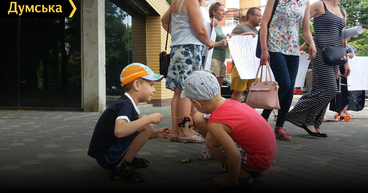 В Одессе заводской детский сад приняли в коммунальную собственность и закрыли: родители вышли на акцию протестаРодители детей, которые посещают детский сад №41 «Радуга», принятый в августе прошлого года в коммунальную собственность территориальной громады Одессы, вышли сегодня на акцию протеста. Она связана с ситуацией, сложившейся вокруг капремонта дошкольного учреждения, ранее принадлежавшего заводу «Орион», передает корреспондент «Думской». Как пояснила нам участница акции Мария Рымарива, после того как апелляционный суд оставил детский сад в коммунальной собственности, городские власти пообещали отремонтировать учреждение. Ремонт должен был продлиться четыре месяца. Работы так и не начались, но садик тем не менее закрыли, а его сотрудников, как утверждают родители, уволили «Было оговорено, что до начала лета дети остаются в саду, чтобы выпустилась старшая группа, а в начале лета начнутся ремонтные работы, — говорит женщина. — Однако ремонт до сих пор не начался, коллектив распустили. Мы обратились в департамент образования и науки, там нас отправили в управление капстроительства горсовета, где нам сказали, что УКС не является заказчиком ремонта Поэтому сегодня мы вышли на протест. Мы хотим получить ответы от мэрии». К собравшимся приехала депутат горсовета Лилия Леонидова, которая сообщила, что детский сад закрыт как аварийный, а ремонт не начнется, пока муниципальное собрание не выделит на него денег. «Пока длились судебные тяжбы, город не мог выделять средства на какие-либо работы, но сейчас вопрос решен. Должно состояться заседание комиссии, на котором примут решение о ремонте и выделении средств», — сказала она. Родители заявили в ответ, что «если чиновники будут продолжать играть в пинг-понг и не дадут четких ответов, то в следующий раз они перекроют движение по Разумовской». МЭРИЯ: САДИК БУДЕТ РАБОТАТЬ Мы попросили прокомментировать происходящее директора муниципального департамента образования и науки Елену Буйневич. Она обещает, что в скором времени «Радугой» займутся всерьез. «Сегодня по этому саду провели совещание при участии двух профильных вице-мэров, — говорит чиновник. Было решено не откладывать и уже сейчас заказать проект ремонта. Родителей можно понять, они волнуются за судьбу сада после всех судебных тяжб, но мы гарантируем, что учреждение будет работать по своему профилю. Заниматься разработкой документации и ремонтом будет УКС. У многих есть сомнения по поводу целесообразности закрытия сада, но работать он не может. Подобные обвинения (в том, что сад закроют, а здание продадут, — Ред.) мы слышали неоднократно . Так было в случаях с садиками №№165 , 29 (там конкретно заявляли, что садик на Сабанеевом мосту продают, а когда сад открыли, извиниться не сочли нужным), 28 и других. Все они успешно работают. Я на связи с родителями и уверена, что у этого садика все будет хорошо. Что касается увольнения коллектива. У нас огромное количество вакансий в действующих садах, мы предложили работу всем сотрудникам «Радуги», но воспитатели и няни уволились по собственному желанию. Мне кажется, когда сад начнет работать, многие вернутся. Там есть те, кто ездил на работу именно в этот садик из другого района города — люди прикипают сердцем к рабочему месту». «Думская» много раз писала об этом детсаде. В этом году ем
