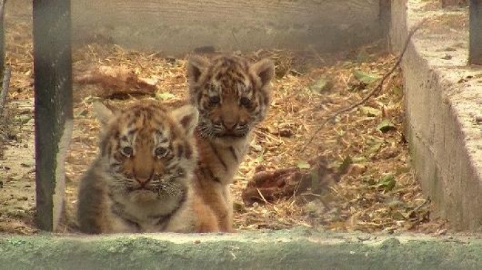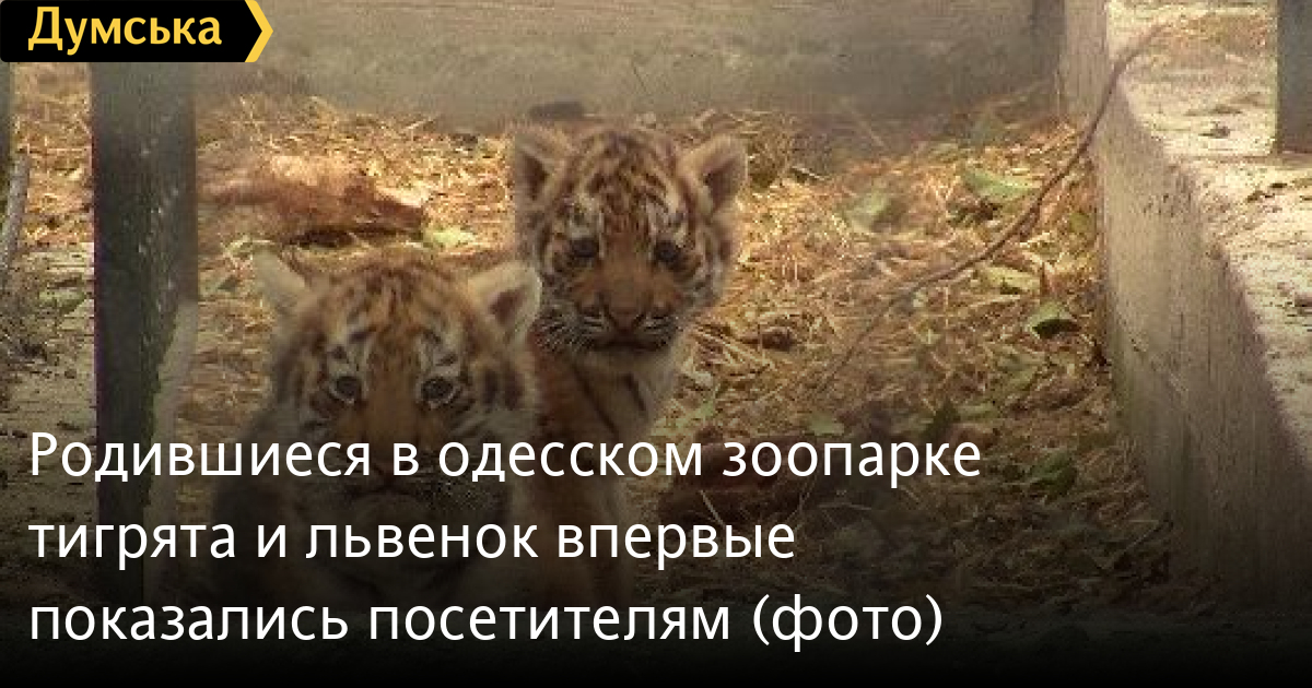 Редкие амурские тигрята и львенок, родившиеся около месяца назад в Одесском зоопарке, уже выходят в вольер.