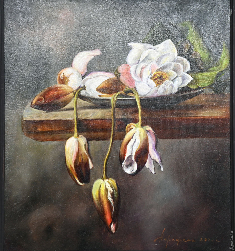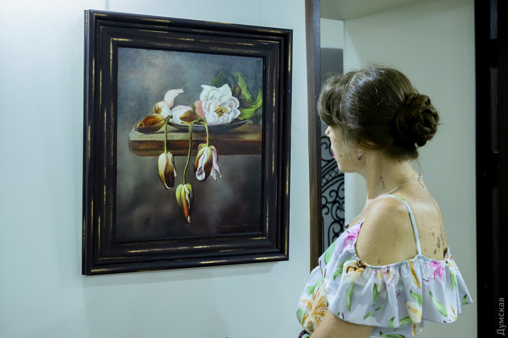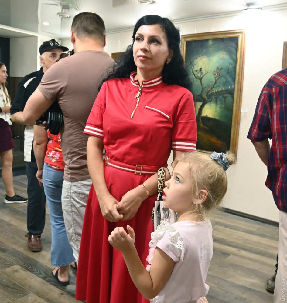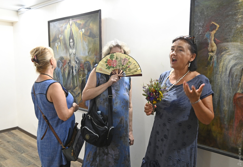 «Я живу в центрі Миколаєва, і останнім часом щоночі о третій-четвертій очікувано починалося бомбардування, по десять ракет. Сидиш у під’їзді та рахуєш, а якось я нарахувала 24 ракети… Поруч будинки вибухають, а ти сидиш и гадаєш, який буде наступним. У мене на шостому поверсі майстерня, добре видно руйнування. Ліфту немає, води немає… Трапилася нагода виїхати з сином до Одеси, вивезти трохи картин, і я цією нагодою скористалася», — втомлено посміхається Аграфена.