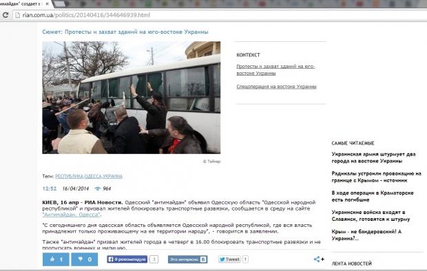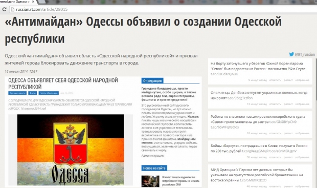 Российские СМИ продолжают тиражировать информацию о создании «Одесской народной республики», несмотря на опровержение.
