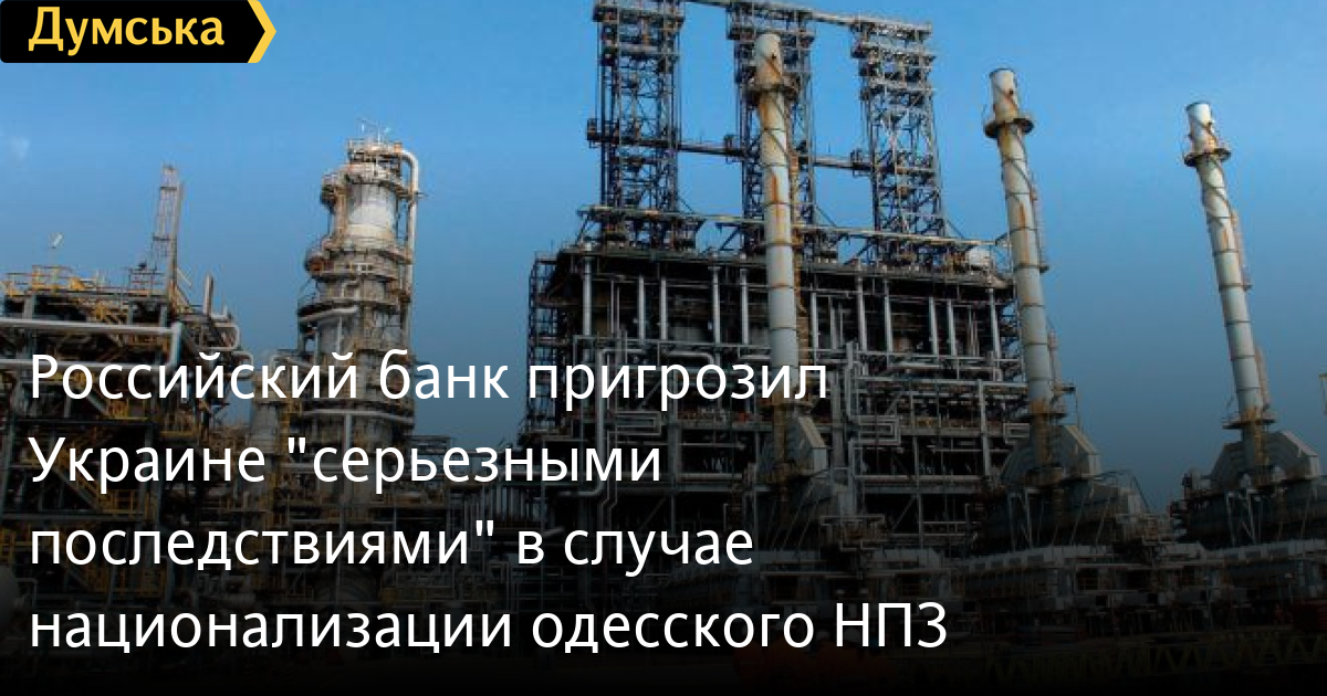 Российский банк ВТБ (61% — в руках у государства) пригрозил Украине серьезными последствиями в случае национализации одесского нефтеперерабатывающего завода, о которой заявил вчера министр внутренних дел Арсен Аваков.