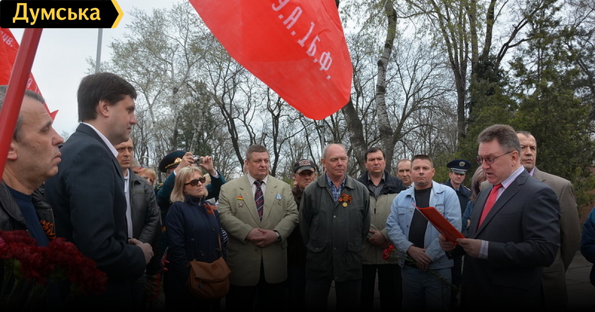 Валерий Шибеко зачитывает поздравление Владимира Путина. Одесса, 10 апреля 2014 года. Фото с сайта "Россотрудничества"