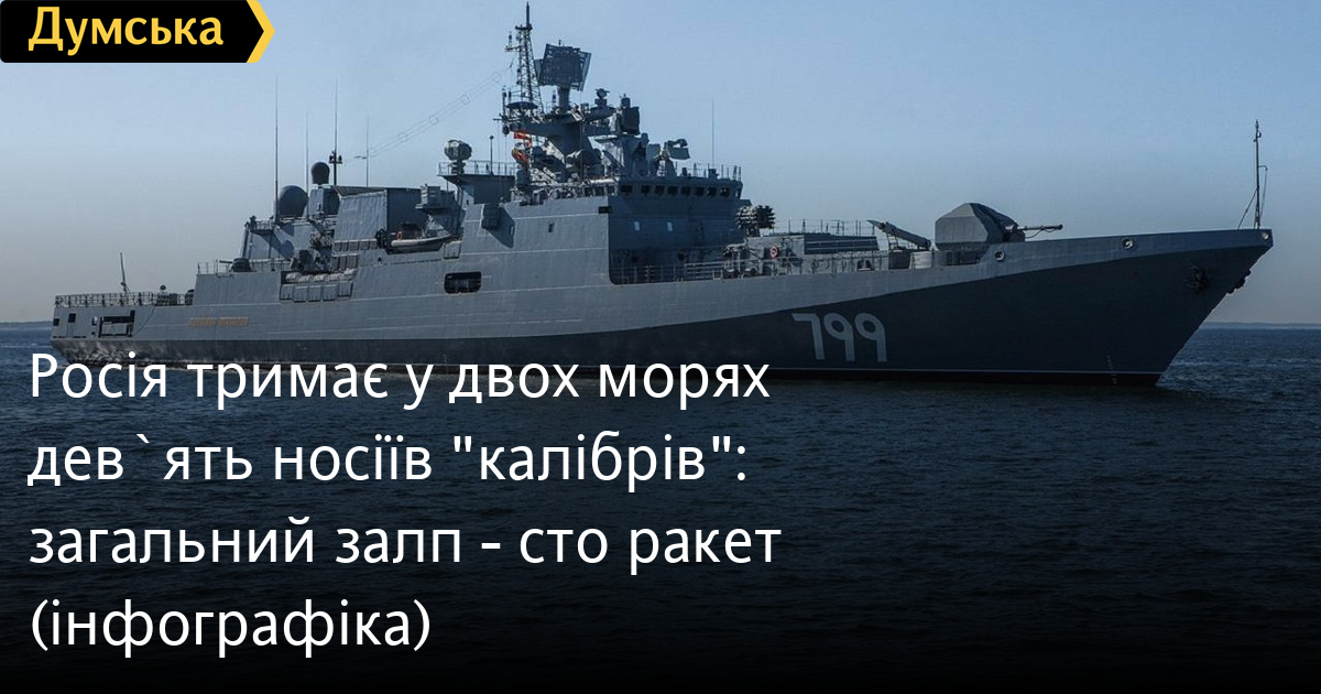 Дев'ять носіїв крилатих ракет тримає російська федерація в Чорному та Середземному морях.