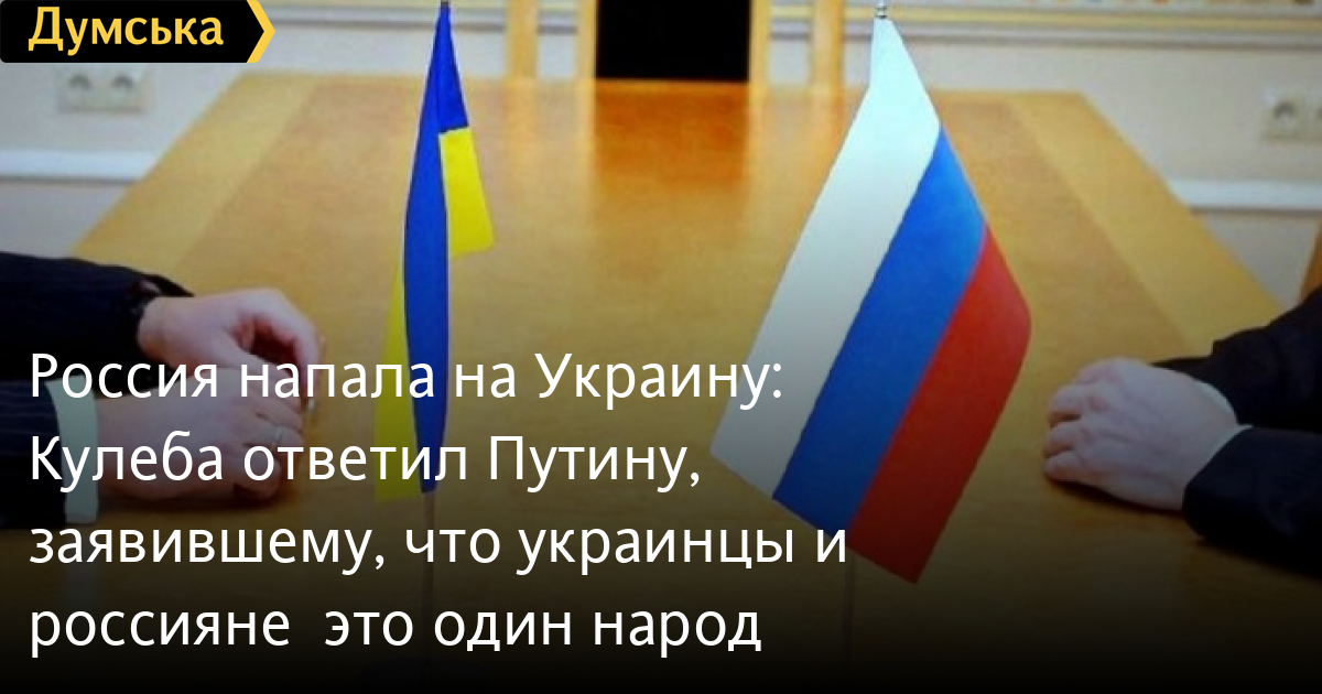 Об этом в своем Twitter написал министр иностранных дел Украины Дмитрий Кулеба в ответ на сегодняшнее заявление президента России о том, что украинцы и россияне — «это вообще один народ».