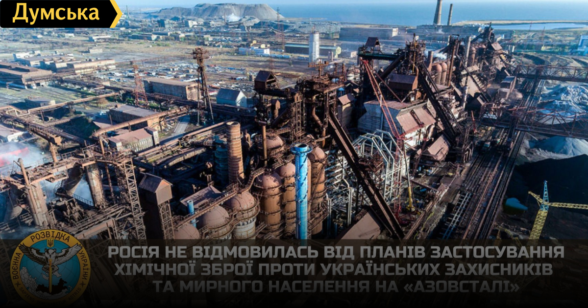 россия не отказалась от планов применения химического оружия против украинских защитников и мирного населения на «Азовстали», — разведкаПротив людей, находящихся на территории завода «Азовсталь», может быть применено химическое оружие. Об этом заявили в Главном управлении разведки Министерства обороны Украины. Чтобы избежать потерь среди военнослужащих рф, украинских защитников и мирное население из подвалов завода могут «выкурить». Для этого российское руководство планирует осуществить бомбово-ракетные удары артиллерийскими и авиационными боеприпасами – носителями боевых ядовитых веществ. Параллельно российским подразделениям войск радиационной, химической и биологической защиты будут применять аэрозоли с химическим оружием. Слова президента рф в обнародованном СМИ видеофрагменте разговора с министром обороны были вырваны из контекста. Фразу о «снятии осады подступов к предприятию так, чтобы и муха не пролетела» следует воспринимать именно в контексте – не дать возможности никому живым выйти из катакомб. В частности после применения химического оружия. Дополнительными подтверждениями планов кремля по применению химического оружия в ГУР считают, во-первых, работу россиян на опережение. Распространение лживой информации о наличии в Украине химического и биологического оружия. Во-вторых — подбор и инспекция возможных мест хранения боеприпасов (баллонов) с боевыми ядовитыми веществами. СМЕРТЬ РОСІЙСЬКИМ ОКУПАНТАМ! Помітили помилку? Виділяйте слова з помилкою та натискайте control-enter |