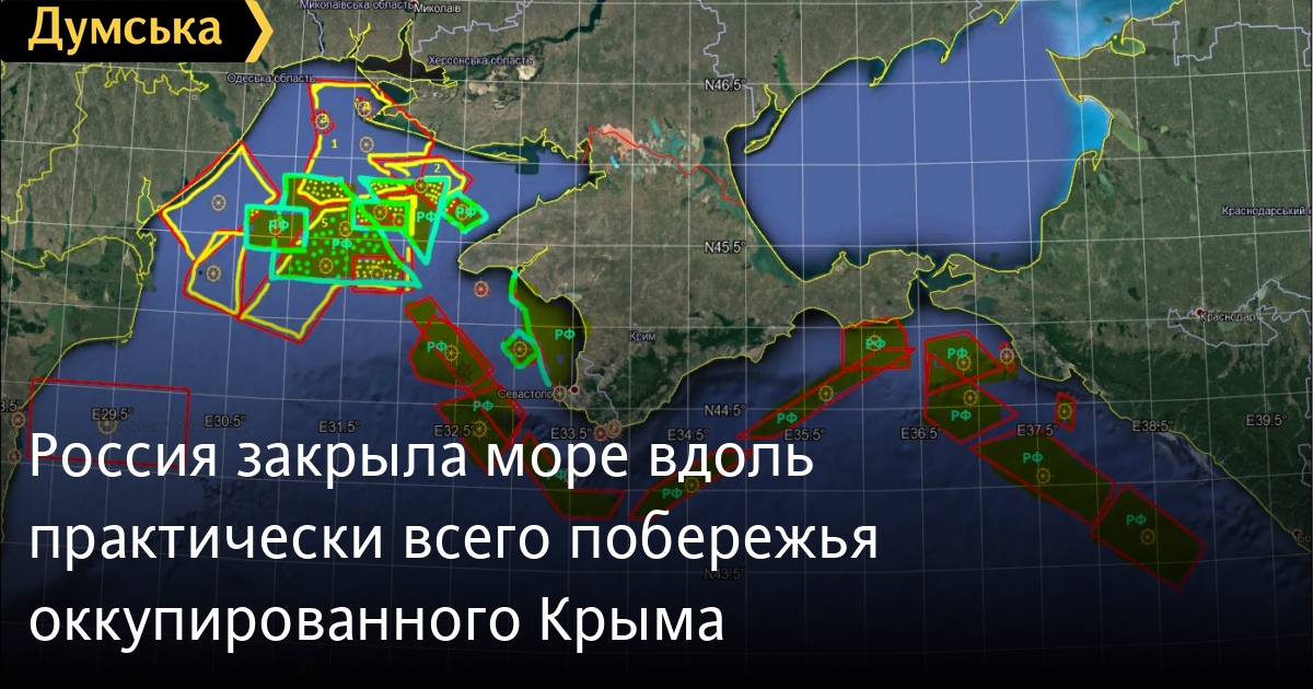 Россия закрыла судоходство на участках Черного моря вдоль практически всего побережья оккупированного Крымского полуострова, а также вдоль Северного Кавказа на время украинско-американских учений «Совместные усилия-2020».