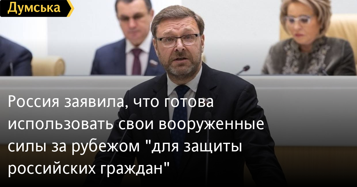 «Причем провокаторы и внутри, и вовне Украины совершенно точно понимают, что в этом случае произойдет. Никоим образом не предрешая развитие событий, просто напомню этим провокаторам, что после того как произошла трагедия Цхинвала, в ноябре 2009 года в России были внесены серьезные поправки в действующий федеральный закон «Об обороне». Десятая статья этого закона дает возможность оперативно использовать Вооруженные силы РФ за рубежом», — предупредил Косачев.