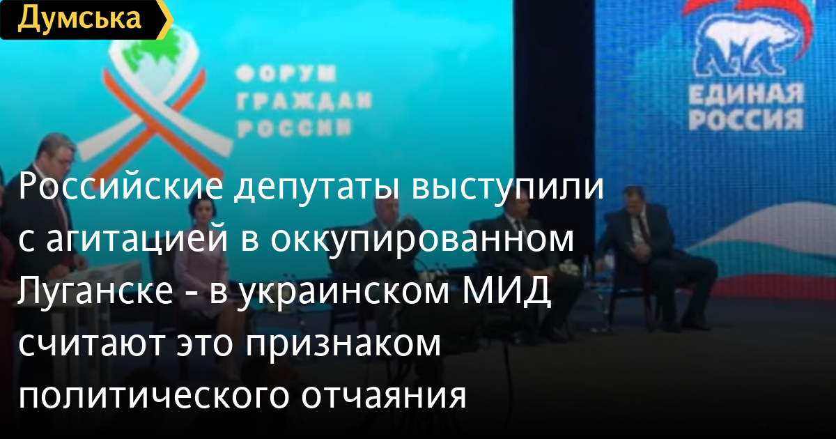 Депутаты российской правящей партии «Единая Россия» посетили оккупированный Луганск. Там прошел так называемый «Форум граждан России», на котором российские депутаты агитировали украинцев с российскими паспортами голосовать на выборах в российскую Думу.