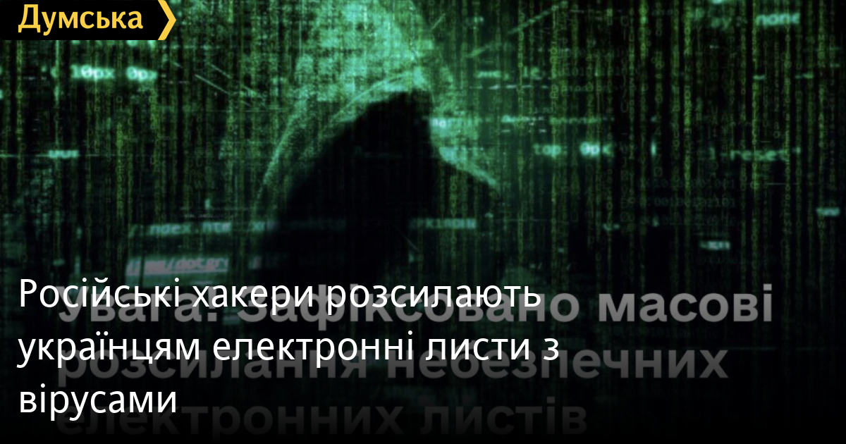 Про це повідомили в урядовій команді реагування на комп'ютерні надзвичайні події України CERT-UA, яка функціонує при Держспецзв'язку.У темі листа значиться так званий «остаточний платіж» з одноіменним вкладенням у вигляді TGZ-архіву.«Відкриття архіву призведе до завантаження на комп'ютер шкідливих програм та, як наслідок, викрадення даних», — повідомляють у CERT-UA.