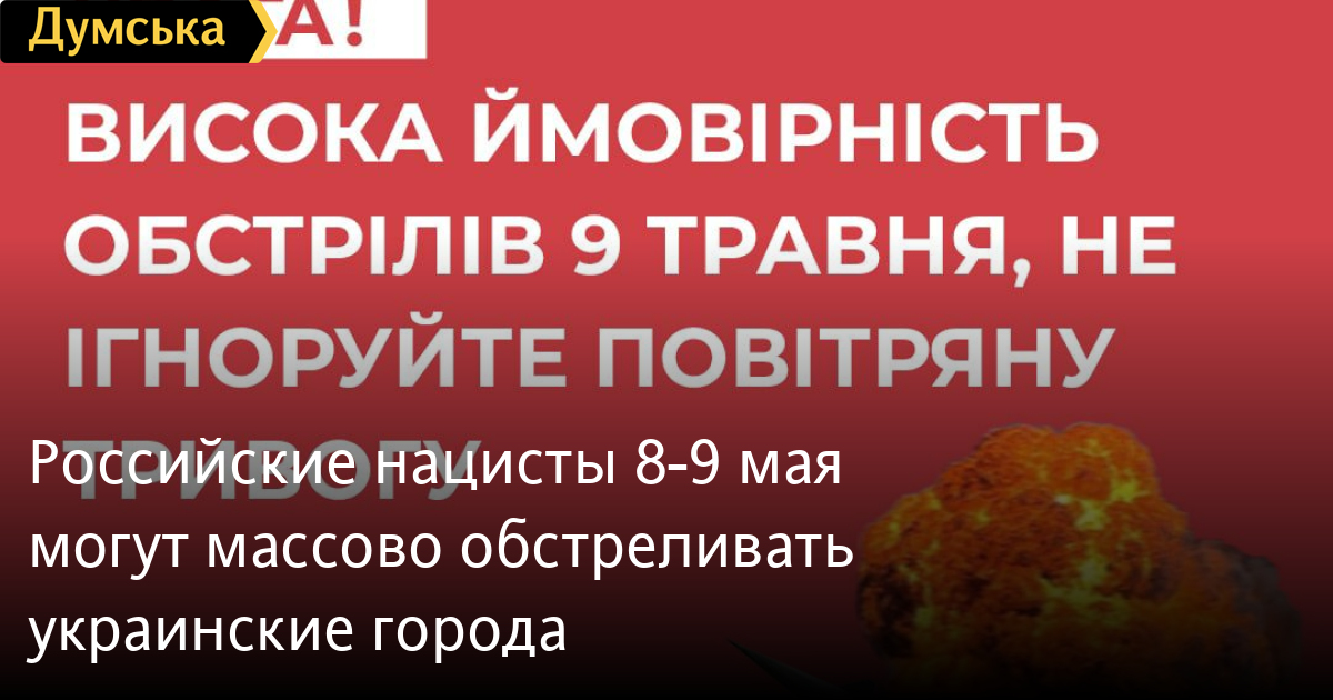Совет национальной безопасности и обороны Украины призывает граждан 8 и 9 мая быть особо бдительными и во время сигналов воздушной тревоги непременно соблюдать правила безопасности. По данным Центра противодействия дезинформации при СНБО, в эти дни россияне могут приурочить ко Дню победы массовые ракетные удары по украинским городам. «Поскольку российские войска не могут похвастаться весомыми достижениями на фронте ко Дню победы, повышается риск массовых обстрелов украинских городов в эти дни», — сообщили в ведомстве. СМЕРТЬ РОССИЙСКИМ ОККУПАНТАМ! Заметили ошибку? Выделяйте слова с ошибкой и нажимайте control-enter |