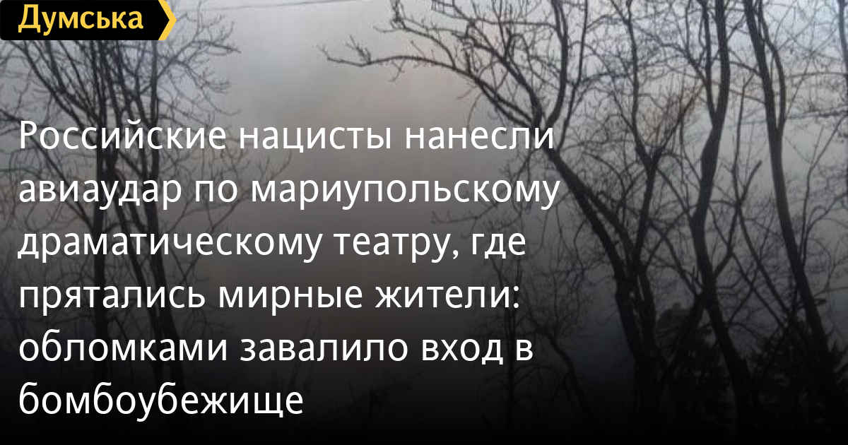 Как сообщает пресс-служба Мариупольского горсовета, сегодня российские нацисты сбросили авиационную бомбу на драматический театр в центре Мариуполя, где прятались мирные жители с детьми.