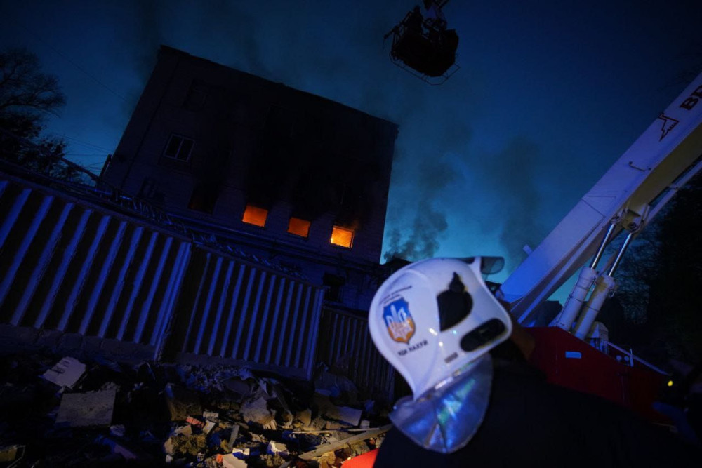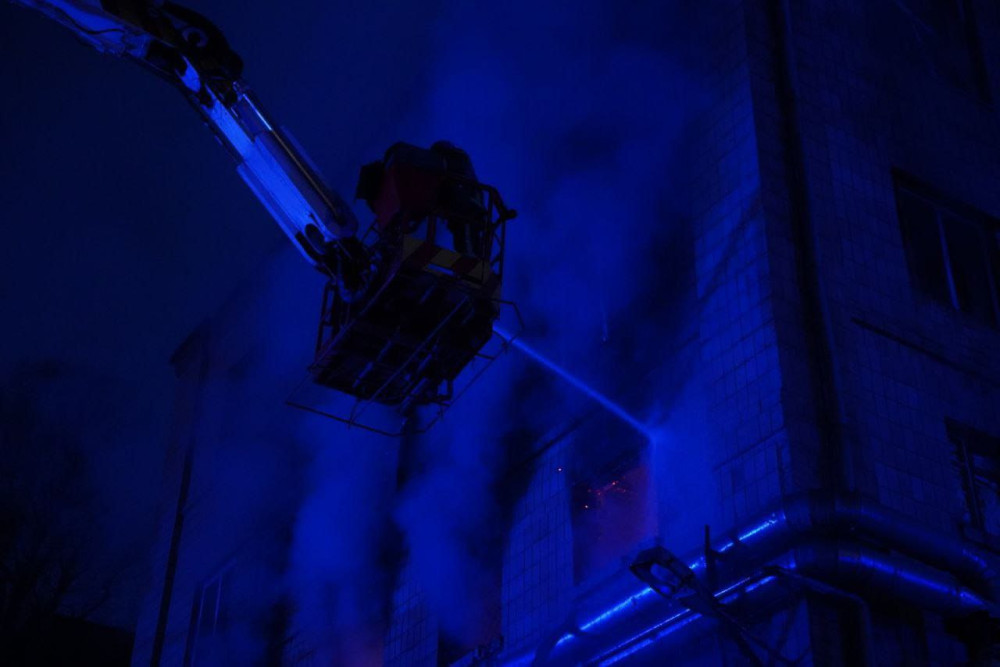 ОБНОВЛЕНО В 23:03. По информации ГСЧС, в результате ракетного удара в Шевченковском районе столицы загорелся 25-этажный жилой дом, произошло частичное обрушение первого и второго этажей. Вызов в Службу спасения поступил в 20:13.