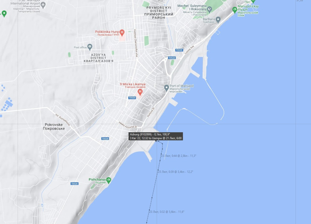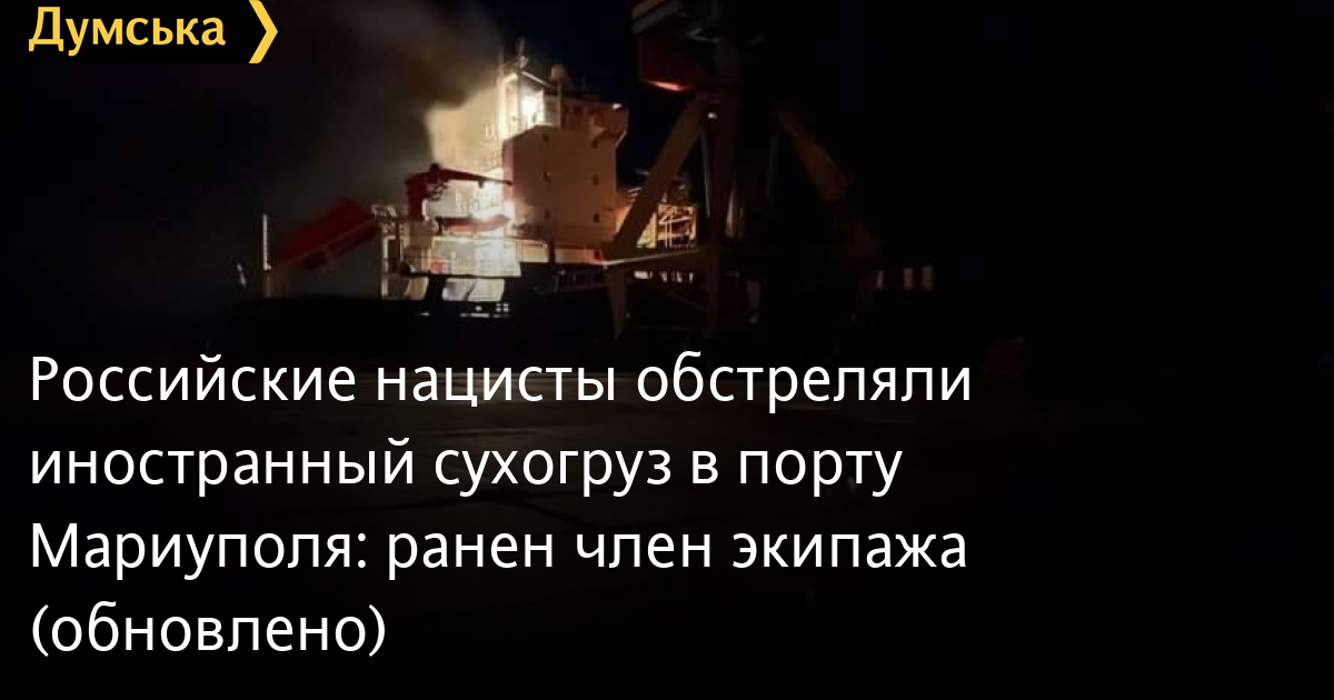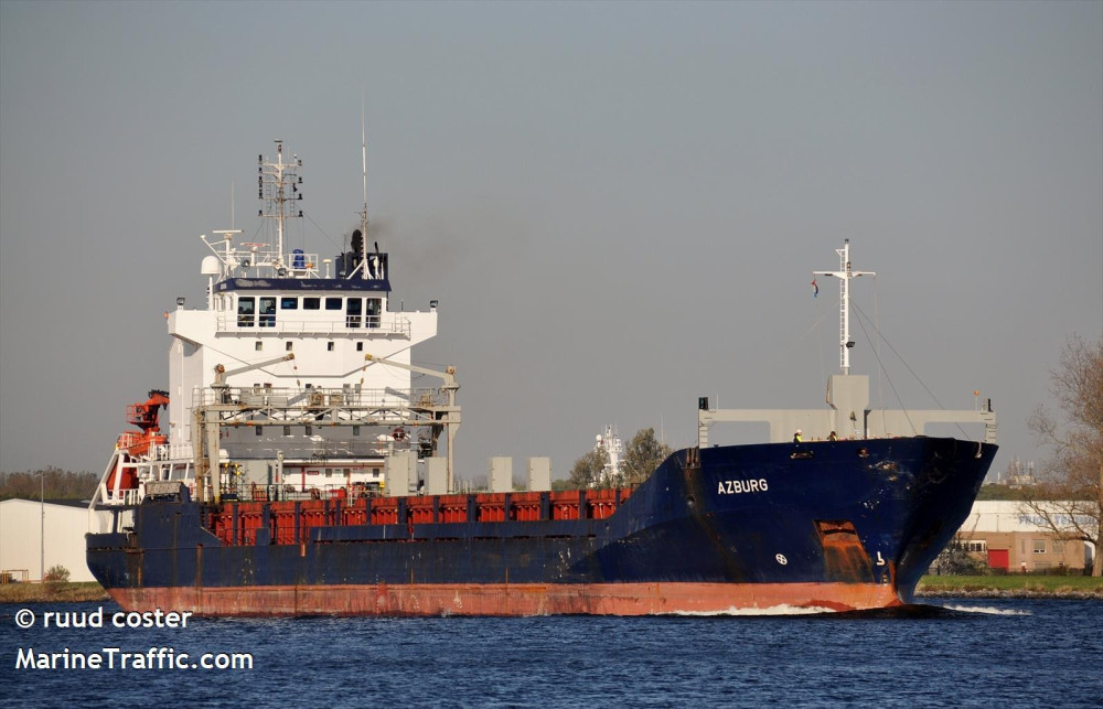 Гражданский торговый сухогруз Azburg (флаг Dominica, судовладелец Malta), находившийся на 16-м причале Мариупольского морского порта, обстреляли российские нацисты.