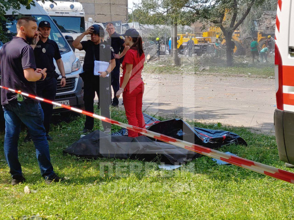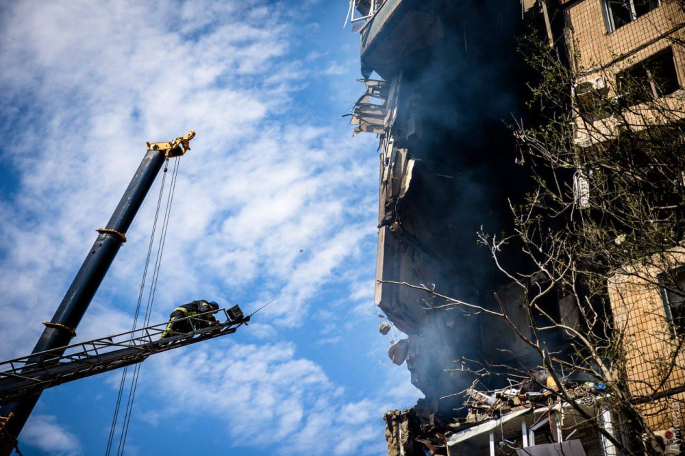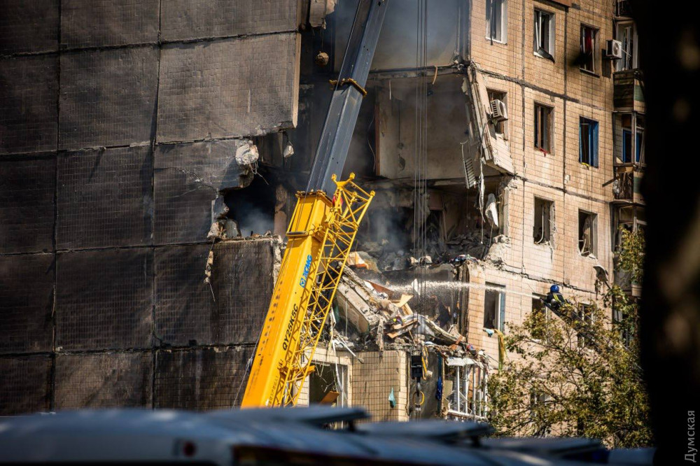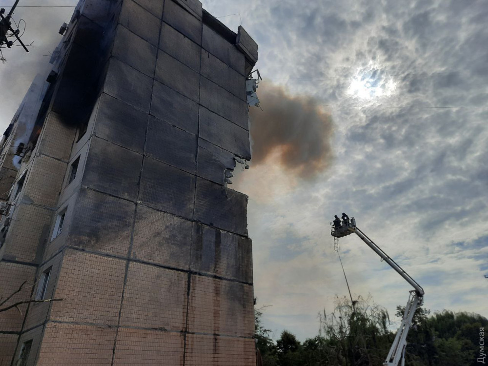 Ракета, що влучила в будинок, зруйнувала секцію будинку з четвертого по дев'ятий поверх, після чого спалахнула пожежа. Рятувальники гасять вогонь, після чого почнуть розбирати завали.