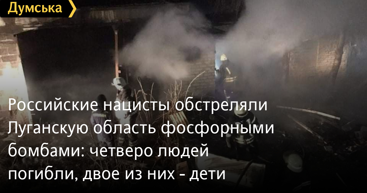 Этой ночью Луганская область подверглась ракетным ударам и фосфорным бомбардировкам. В результате действий оккупантов погибли четыре человека, двое из них - дети.