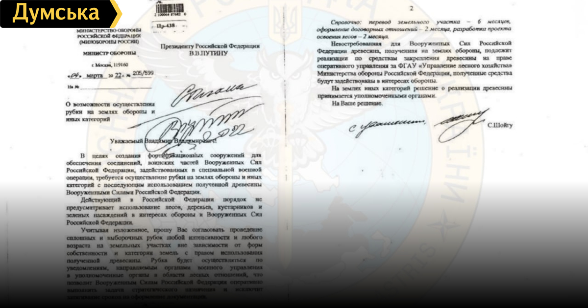 Российские нацисты планируют вырубать украинские леса для создания фортификационных сооружений (документ)Российские нацисты планируют массовую вырубку украинских лесов. Об этом идет речь в письме министра обороны РФ Шойгу диктатору Путину, копией которого располагает Главное управление разведки Минобороны Украины. В документе руководитель российского военного ведомства просит разрешение начать вырубку украинских «лесов, деревьев, кустарников и зеленых насаждений» для строительства фортификационных сооружений. При этом вырубки планируются «любой интенсивности и любого возраста, вне зависимости от формы собственности и категории земель с правом использования полученной древесины». Древесину, которая не будет использована для потребностей армии страны-агрессора, продадут, а полученные средства направят на обеспечение оккупационных войск. «Сегодня все без исключения леса, которые оказались на временно оккупированных территориях, находятся в зоне наивысшего риска, — отмечают украинские разведчики. — Тотальная вырубка зеленых насаждений — это очередное страшное преступление оккупантов и создание экоцида. Последний раз подобное на территории Украины происходило во время нацистской оккупации». СМЕРТЬ РОСІЙСЬКИМ ОКУПАНТАМ! Помітили помилку? Виділяйте слова з помилкою та натискайте control-enter |