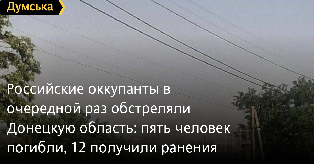 За прошедшие сутки в результате атак российских нацистов в Донецкой области погибли пятеро мирных жителей, еще 12 получили ранения.