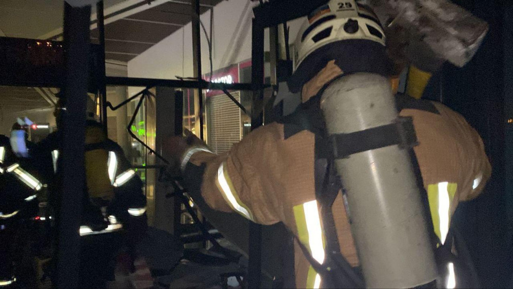 ОБНОВЛЕНО В 00:05. На территории торгового центра в результате обстрела возник сильный пожар. Известно как минимум об одном погибшем.