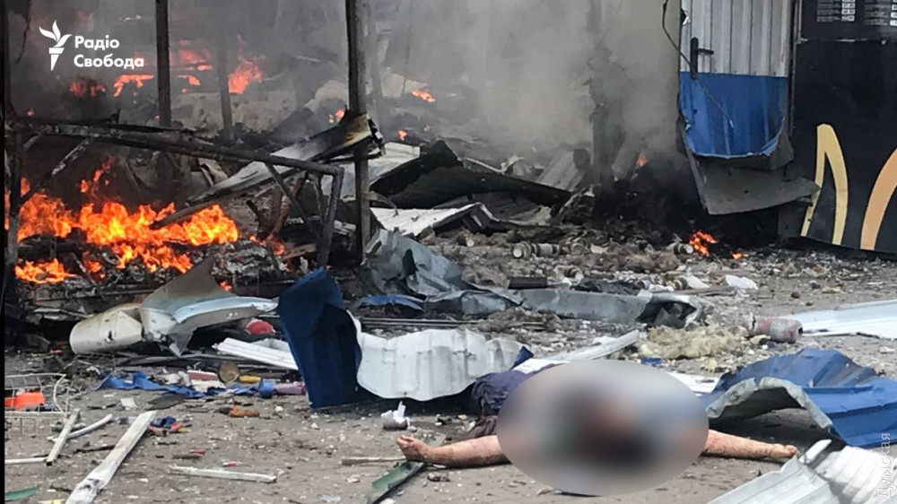 Под удар попал рынок, появились фото с места событий, на которых виден один из вероятно погибших жителей города.
