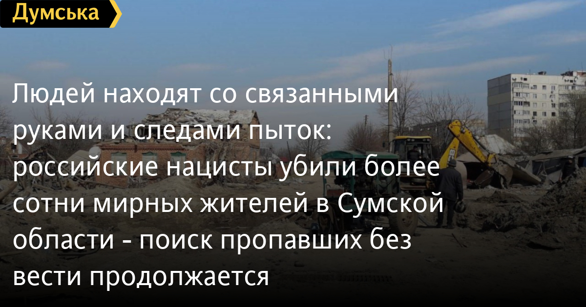 «Очень много граждан, о судьбе которых мы вообще ничего не знаем – на дорогах и трассах, в лесах найдены расстрелянные машины, а что случилось с людьми из этих машин — неизвестно, — рассказал глава ОВА. — В больницах много раненых, много наших раненых в больницах соседних областей. Очень серьезная психологическая травма у перенесших оккупацию людей, через населенные пункты которых проезжали колонны из тысяч единиц вражеской техники».