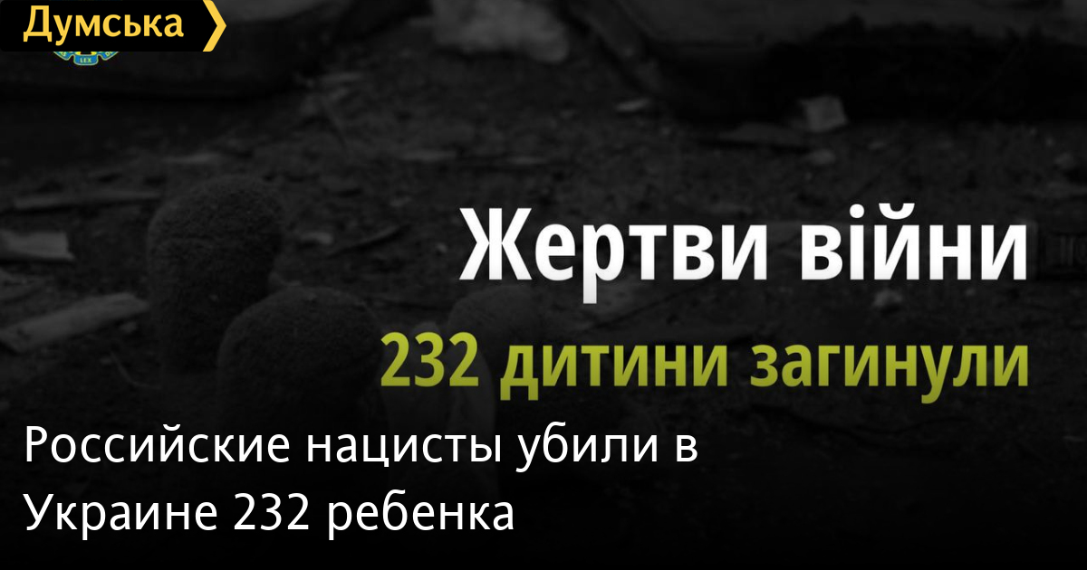 С начала полномасштабного военного вторжения рф в Украину в нашей стране от рук российских оккупантов погибли 232 ребенка.