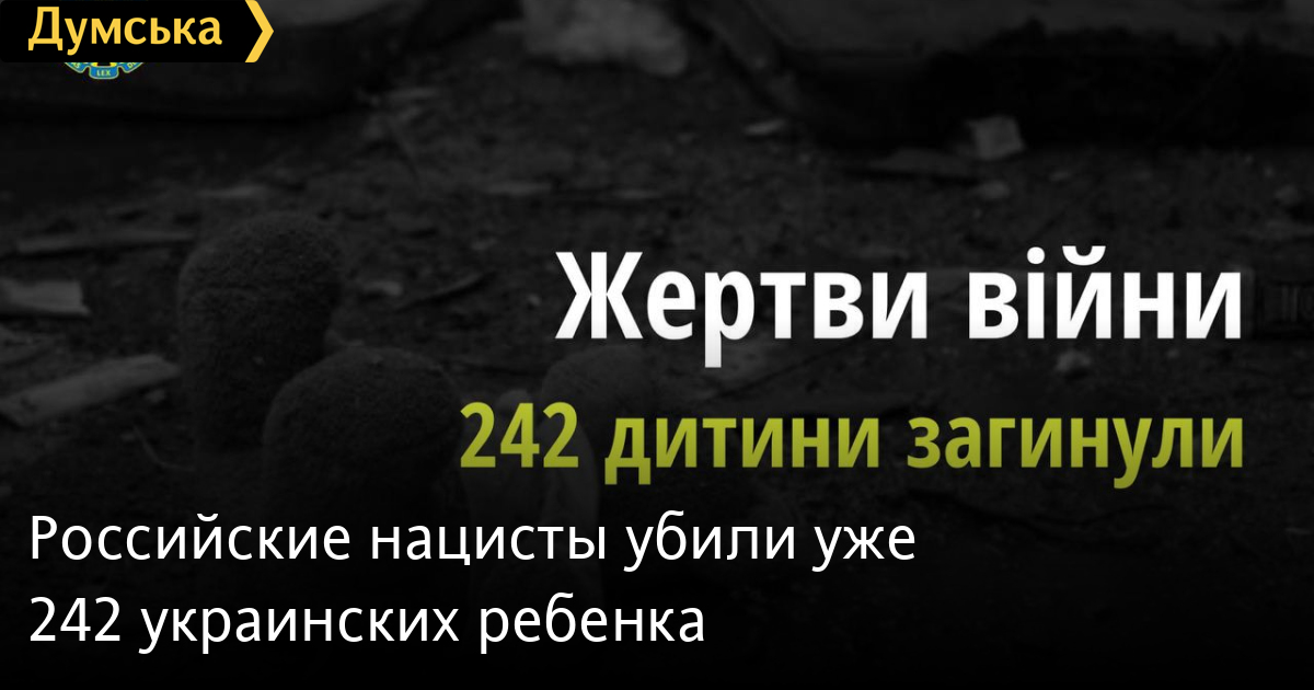 242 украинских ребенка погибло от рук российских нацистов с начала полномасштабного военного вторжения рф в нашу страну.