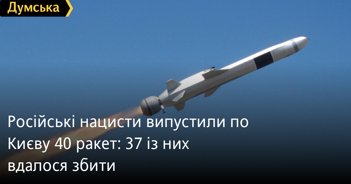 Із 40 ракет, запущених російськими окупантами по Києву, вдалося збити 37, - заявив речник Київської міської військової адміністрації Михайло Шаманов.