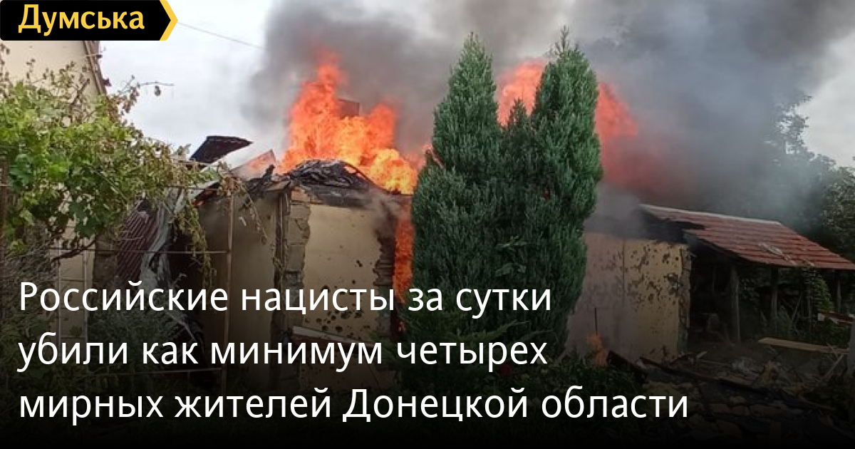 Российские нацисты за сутки убили как минимум четырех мирных жителей Донецкой областиРоссийские оккупанты за минувшие сутки убили как минимум четырех мирных украинцев в Донецкой области. Как сообщил глава Донецкой ОВА Павел Кириленко, погибли жители Новониколаевки, Орловки, Красногоровки, Славянска. Также в Доброполье погибли два человека, еще трое получили ранения, среди них двое детей. В результате вражеской атаки в городе уничтожен один дом, еще шесть повреждены. «Россияне точно знают, что бьют по гражданским – и делают это осознанно и целенаправленно. Эти безнравственные чудовища никогда не соблюдали законы и обычаи ведения войны и никогда не будут», – добавил Кириленко. В настоящее время невозможно установить точное количество жертв в Мариуполе и Волновахе. СМЕРТЬ РОССИЙСКИМ ОККУПАНТАМ! Заметили ошибку? Выделяйте слова с ошибкой и нажимайте control-enter |