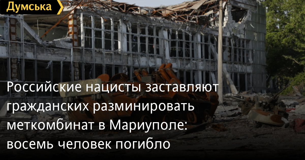 «Мариуполь. Набраны люди на разбор завалов на территории ММК им. Ильича. Фактически людей используют в качестве минеров. За последнюю неделю в ходе таких работ внутри завода на мине подорвались восемь гражданских», — отметил он.