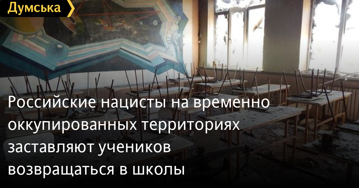 Как сообщает уполномоченная Верховной Рады по правам человека Людмила Денисова, в городе Волноваха Донецкой области российские нацисты заставили детей вернуться в учебные заведения с 11 апреля.